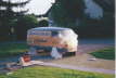 Historie: Der Bulli wurde von der Firma Pillenstein in Nürnberg als lichtgrauer Kastenwagen ausgeliefert, ging dann gleich zum Lackieren. Dafür übernahm die Fa. Dunlop die Kosten. Erstzulassung ist der 15.1.1965, ab diesem Zeitpunkt stand er bei der Firma Reifenhaus Sommer in Fürth im Dienst. Danach verliert sich die Spur, es existiert noch ein Fahrzeugschein, in dem eine TÜV-Fälligkeit von Juli 1972 vermerkt ist. Ich nehme an, daß der Bulli nicht sehr viel länger als 1972 bewegt wurde, was auch den sehr rostarmen Zustand erklären könnte. Über Umwege ist der Bulli 1999 zu mir gekommen. Ein echter, umbefummelter Arbeitsbulli!