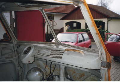 Amaturenbrett im unverbohrten Zustand, rostfreier Fensterrahmen - nur eben vollständig zerlegt